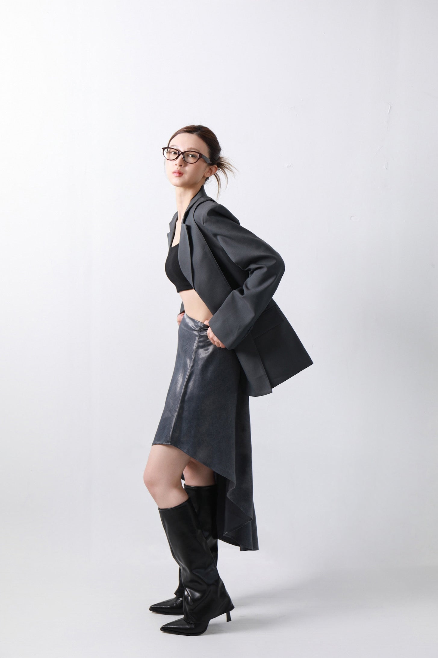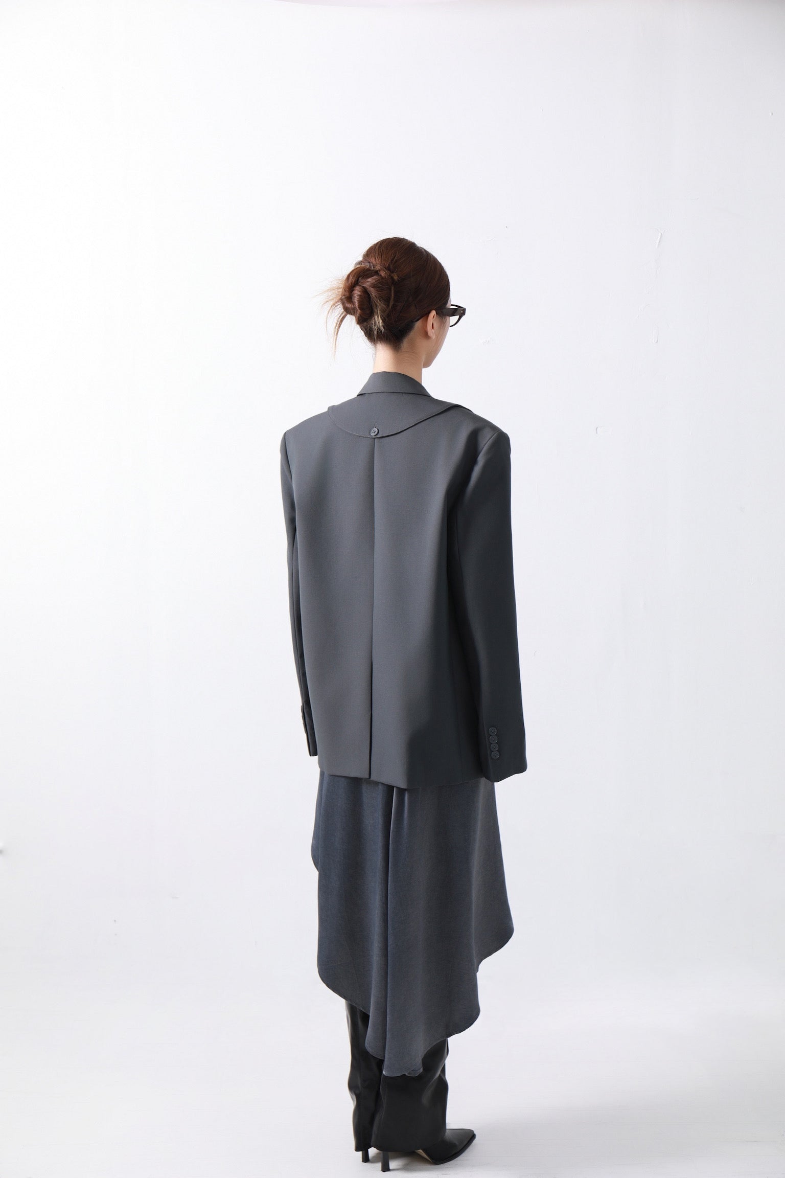 The detachable collar offers two distinct styles: wear it attached for a classic, sophisticated look, or remove it for a minimalist, contemporary vibe.Designed with a deep V-front neckline and defined shoulder construction, it creates the illusion of sharper, more balanced shoulders.