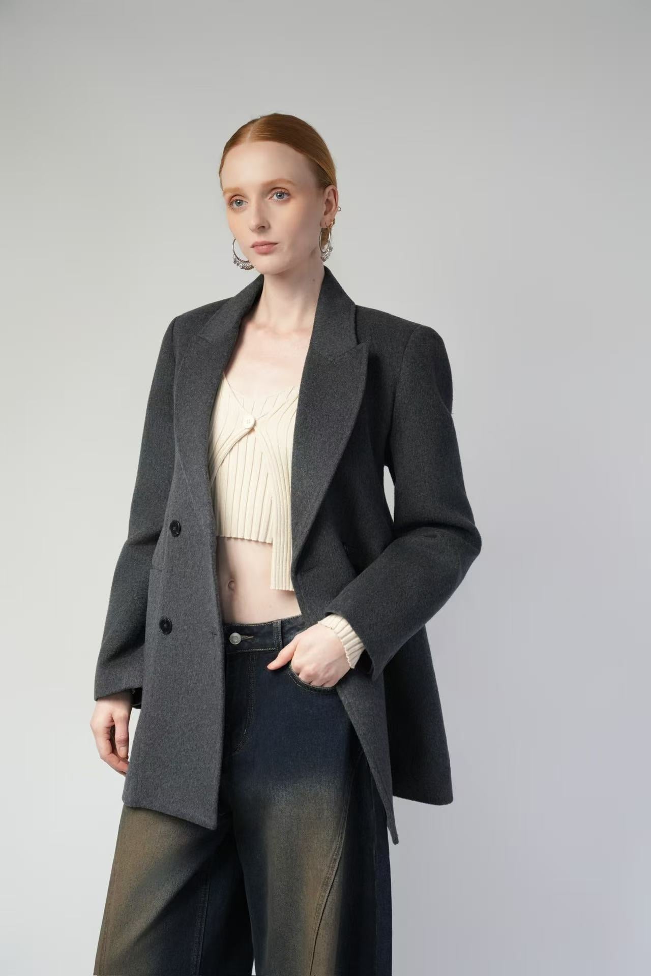 Mid-Length Double-Faced Wool Blazer