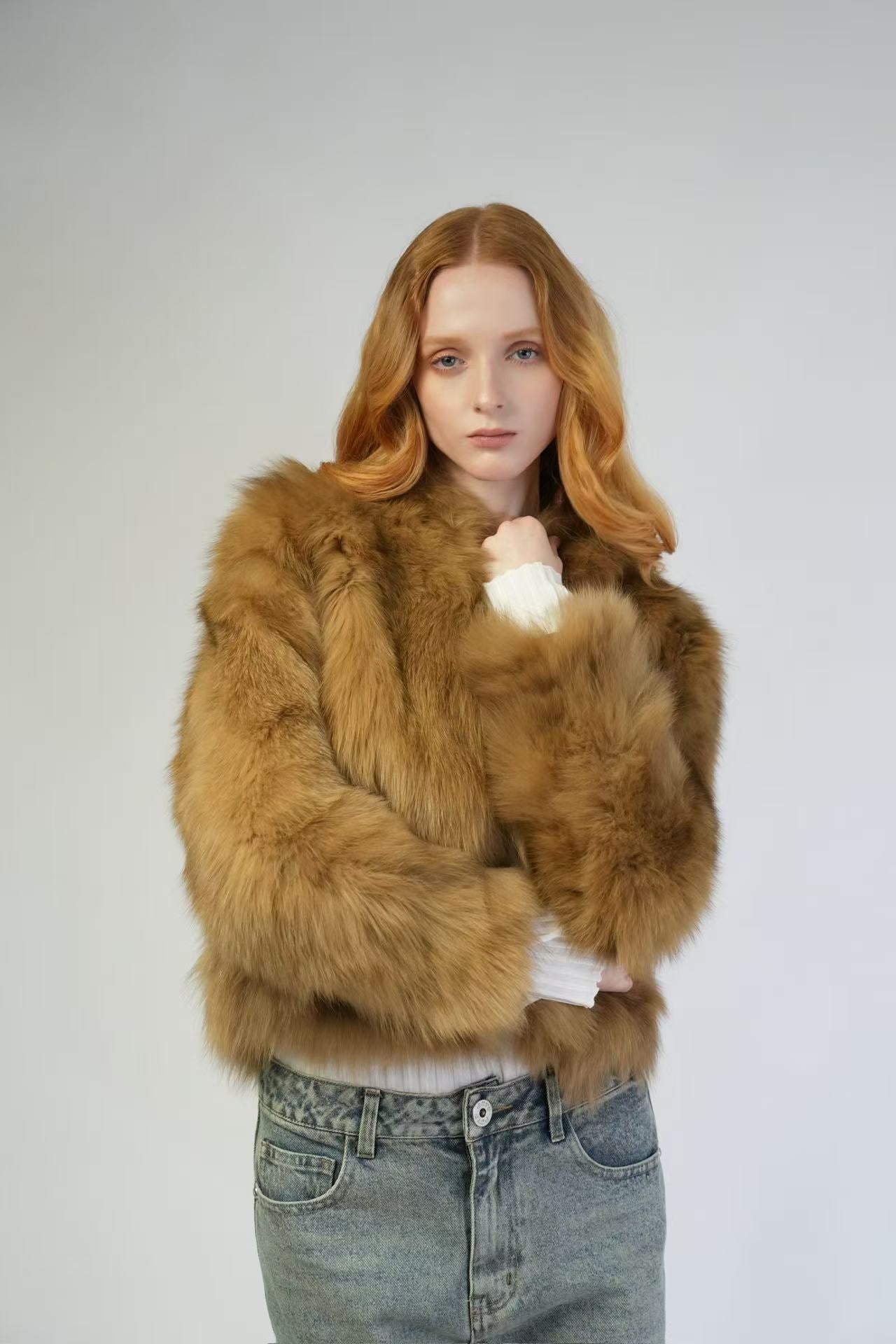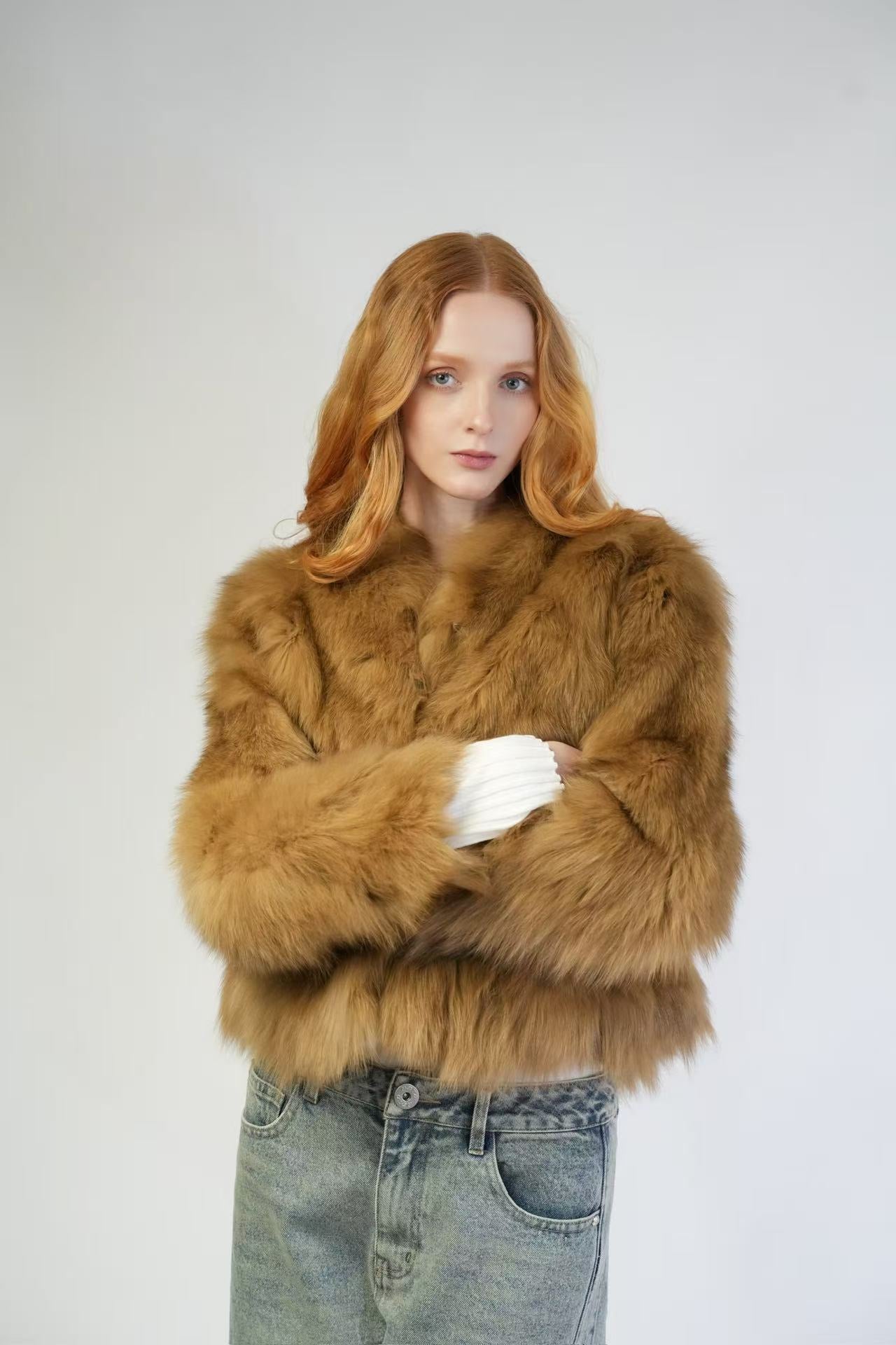 - The short fox fur coat with a frost-tinted color is very eye-catching. The fur is thick and fluffy, giving the overall look a sense of fashion and visual impact, while also featuring the luxurious texture of fur.