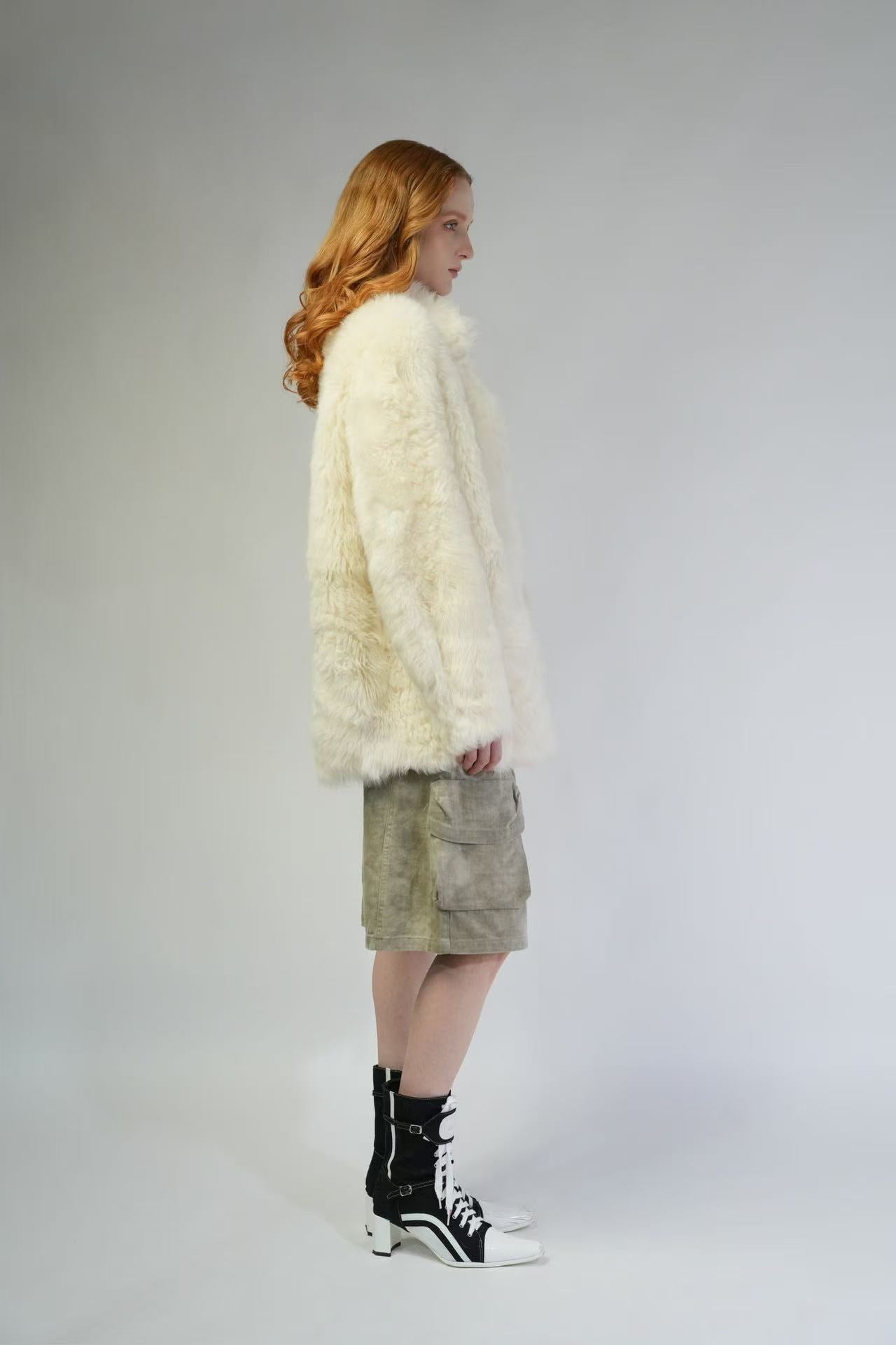 - This Italian imported Tuscan fur piece features a bright and fluffy coat color. The sheepskin surface is fine, smooth, simple yet stylish, with a straight and slightly loose fit. The lines flow down smoothly and neatly, making one look slimmer. It is both warm and fashionable.