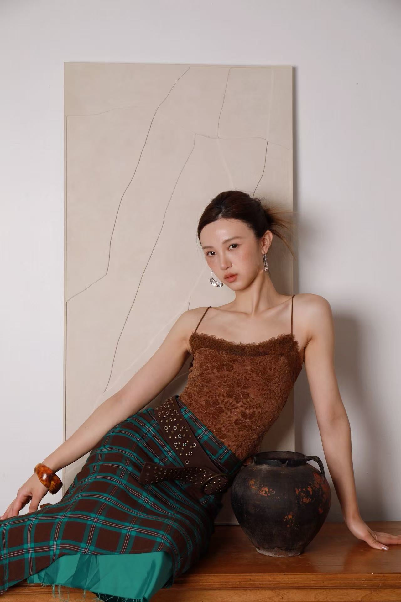 Lace fabric with delicate floral pattern. Slim-fit cut highlights natural lines Soft and breathable, comfortable on skin.Easy to layer or wear alone for versatile looks