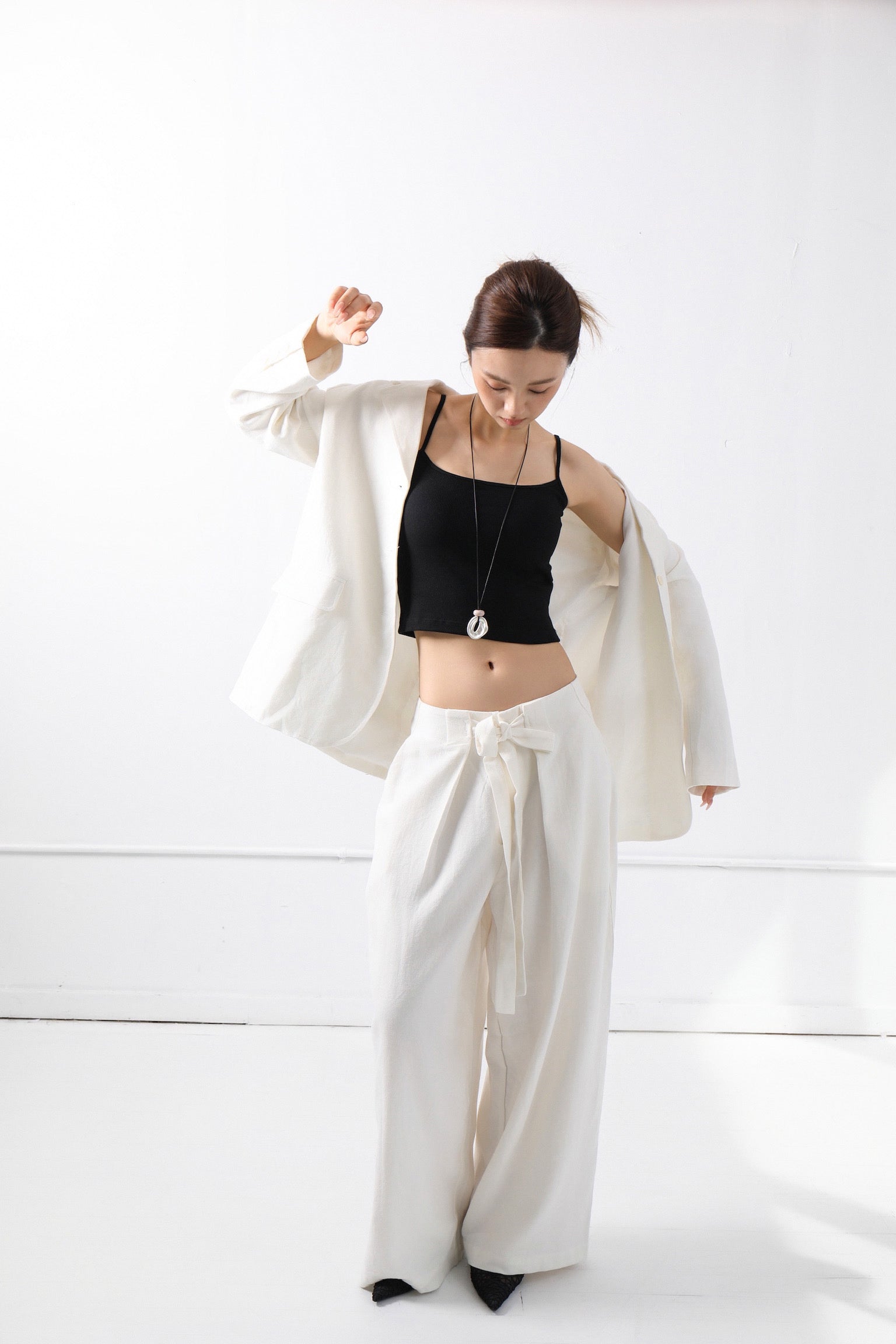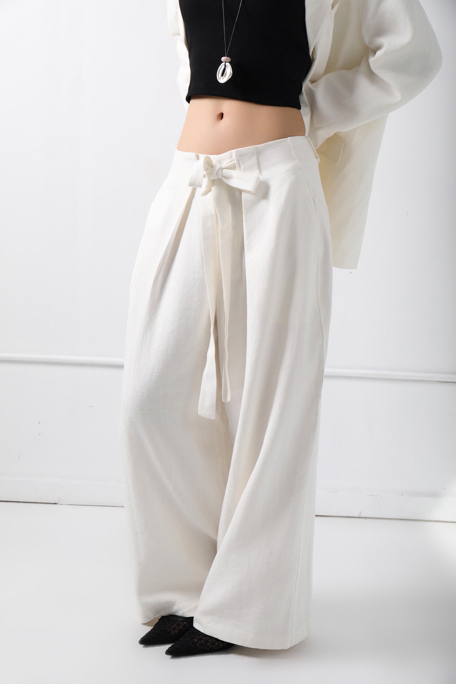 Cut from a breathable linen-blend fabric, the trousers offer a relaxed, flowing fit that moves with you, ensuring all-day ease whether you’re commuting or relaxing.